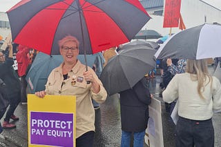 The rain held off and it was a very gentle stroll from the Band Rotunda by Bridge St down Victoria St to Garden Place for today’s strike action and…