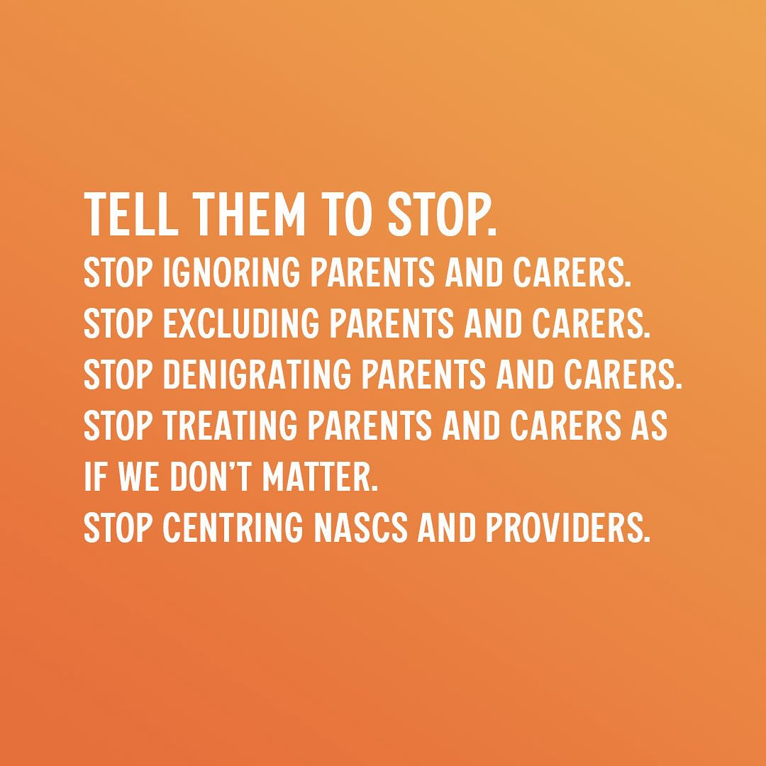 The focus of the very first public communication was on budgets, service providers and NASCs. Parents, families, and carers were an afterthought, carelessly thrown in only after parents organised, agitated, and emailed.
