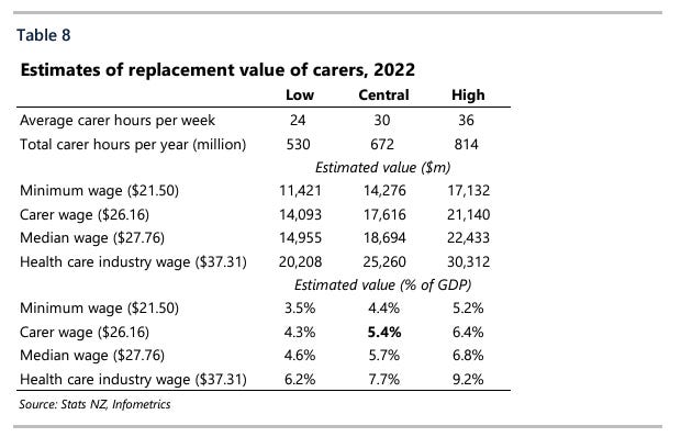 Aotearoa New Zealand is increasingly relying on parents and family carers to meet the gap between need and proffered supports. The most recent Infometrics report on the Economic Contribution of Caregiving estimated our unpaid work as having an annual economic value of $17.6 billion or 5.4% of GDP. To put this in context, there are 7.9 unpaid carers for every practising nurse, and 9.6 unpaid carers for every personal care assistant or aged and disability sector carer.